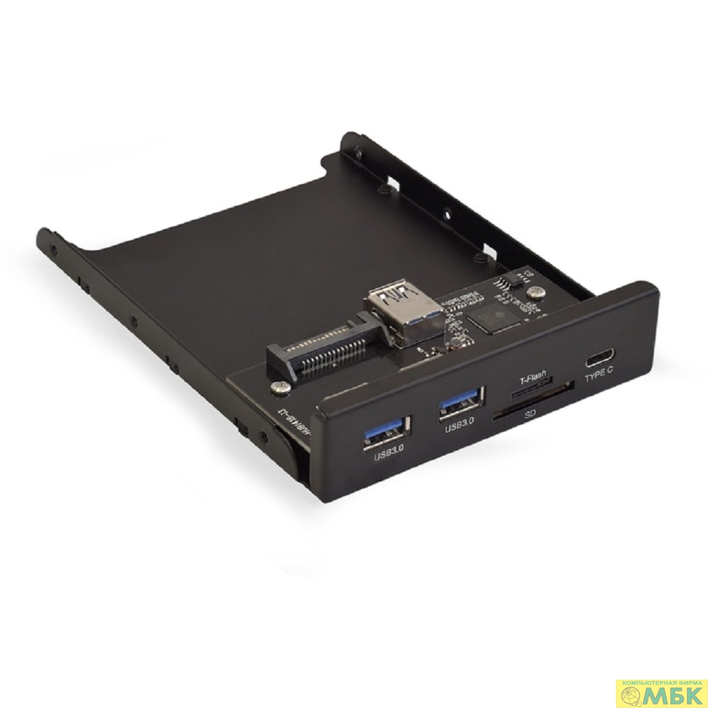 Exegate EX283578RUS Планка USB на переднюю панель ExeGate U3H-621, 3,5", 2*USB3.0+1*TypeC+1*SD+TF card, черная, металл, подсоединение к мат. плате