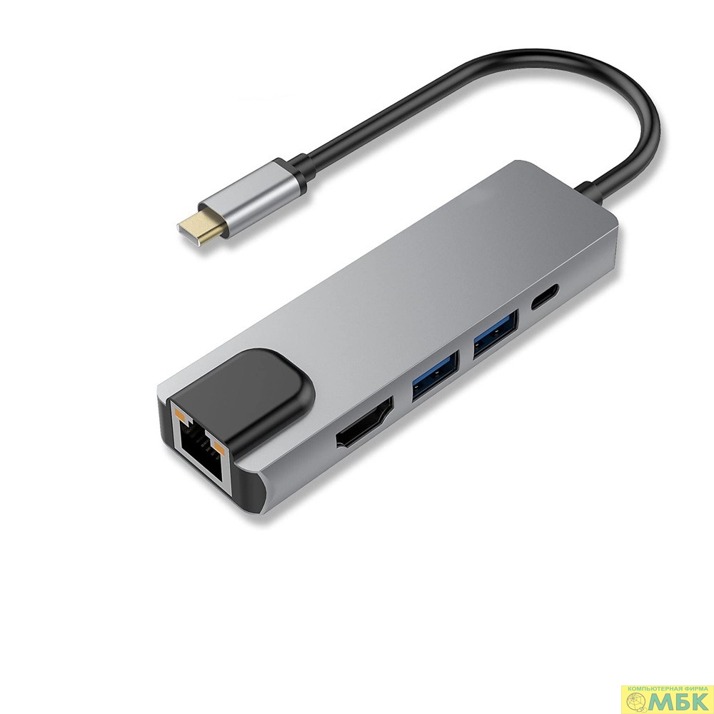 Bion Мульти переходник USB Type-C - USB Type-C/2*USB-A 3.0/HDMI/RJ-45 1000мб/с, 60W, алюминиевый корпус, длина кабеля 10 см [BXP-A-USBC-MULTI-03]