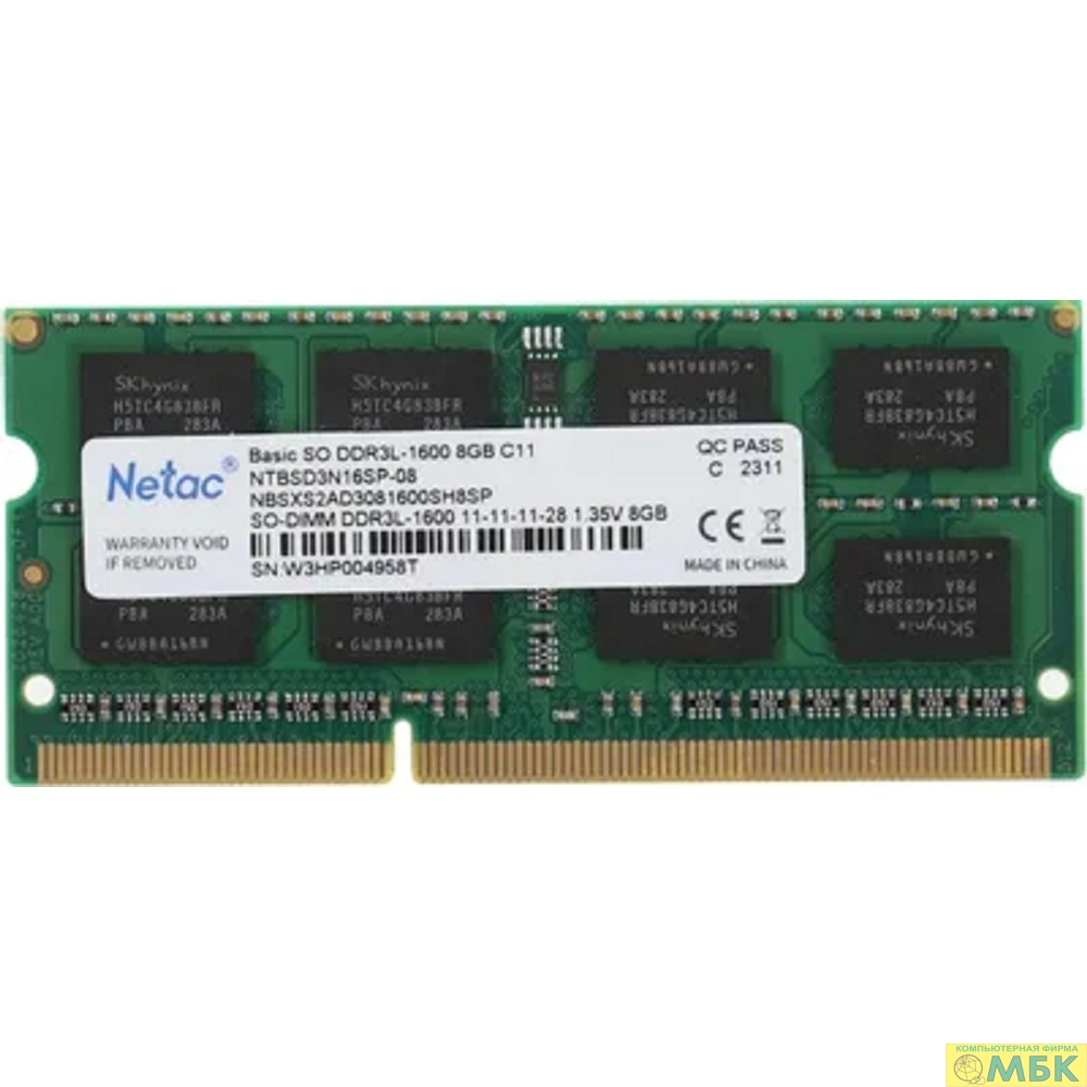 Память SO-DIMM DDR3L 8Gb PC12800 1600MHz CL11 1.35V Netac (NTBSD3N16SP-08)