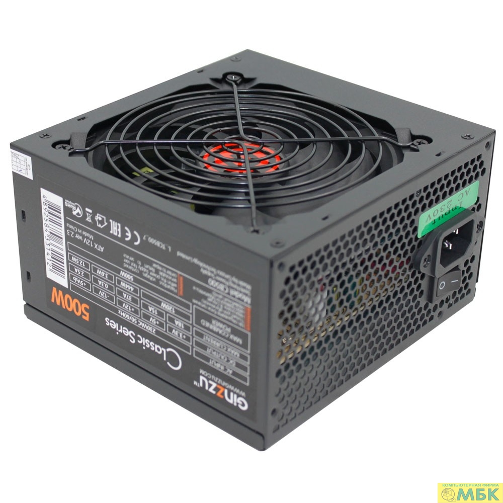 Ginzzu CB500 12CM black,24+4p,PCI-E, 4*SATA, 3*IDE,оплетка MB, кабель питания