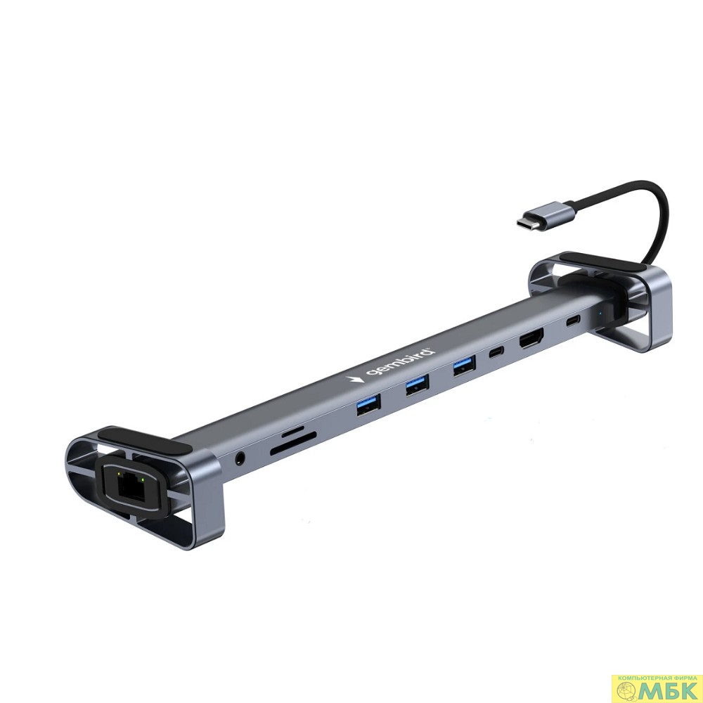 Gembird Док-станция Type-C,10 в 1:3xUSB3.1, PD87W, Jack, SD/TF, HDMI, RJ45, Type-C, кабель14см (UHB-D5)