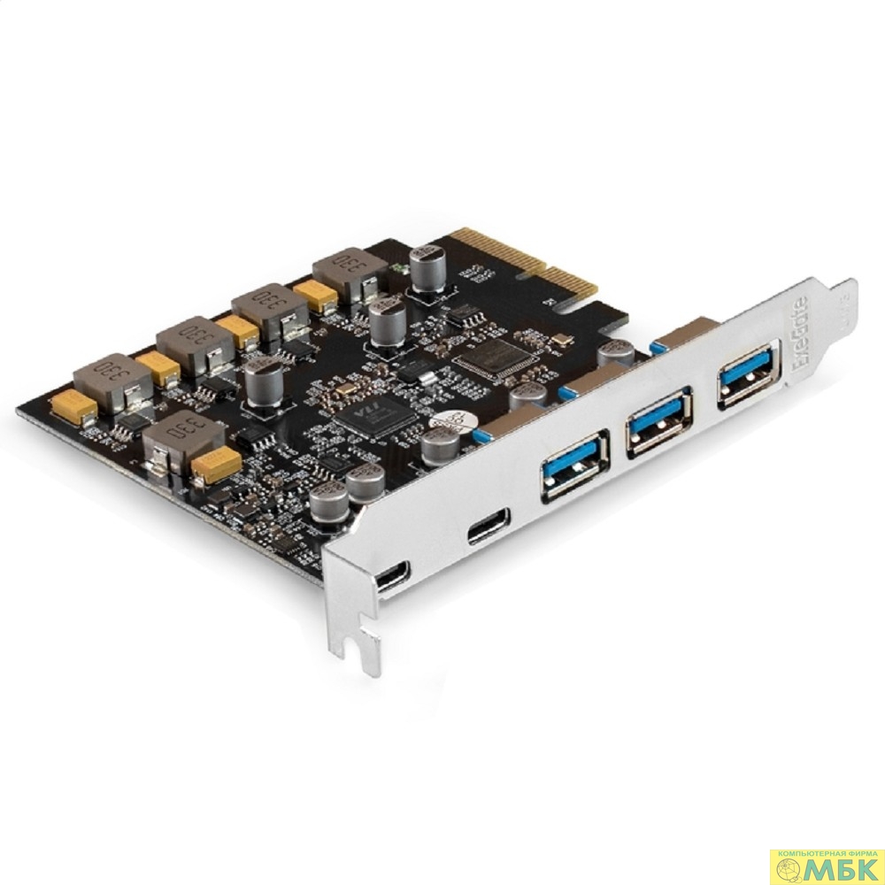 Exegate EX298301RUS Контроллер ExeGate EXE-313-3A2C (PCI-E x4 v3.0, USB3.2 Gen2 3xType-A + 2xType-C ext., SuperSpeed+ скорость до 10 Гбит/с, разъем доп.питания, ASMedia Chipset ASM3142)