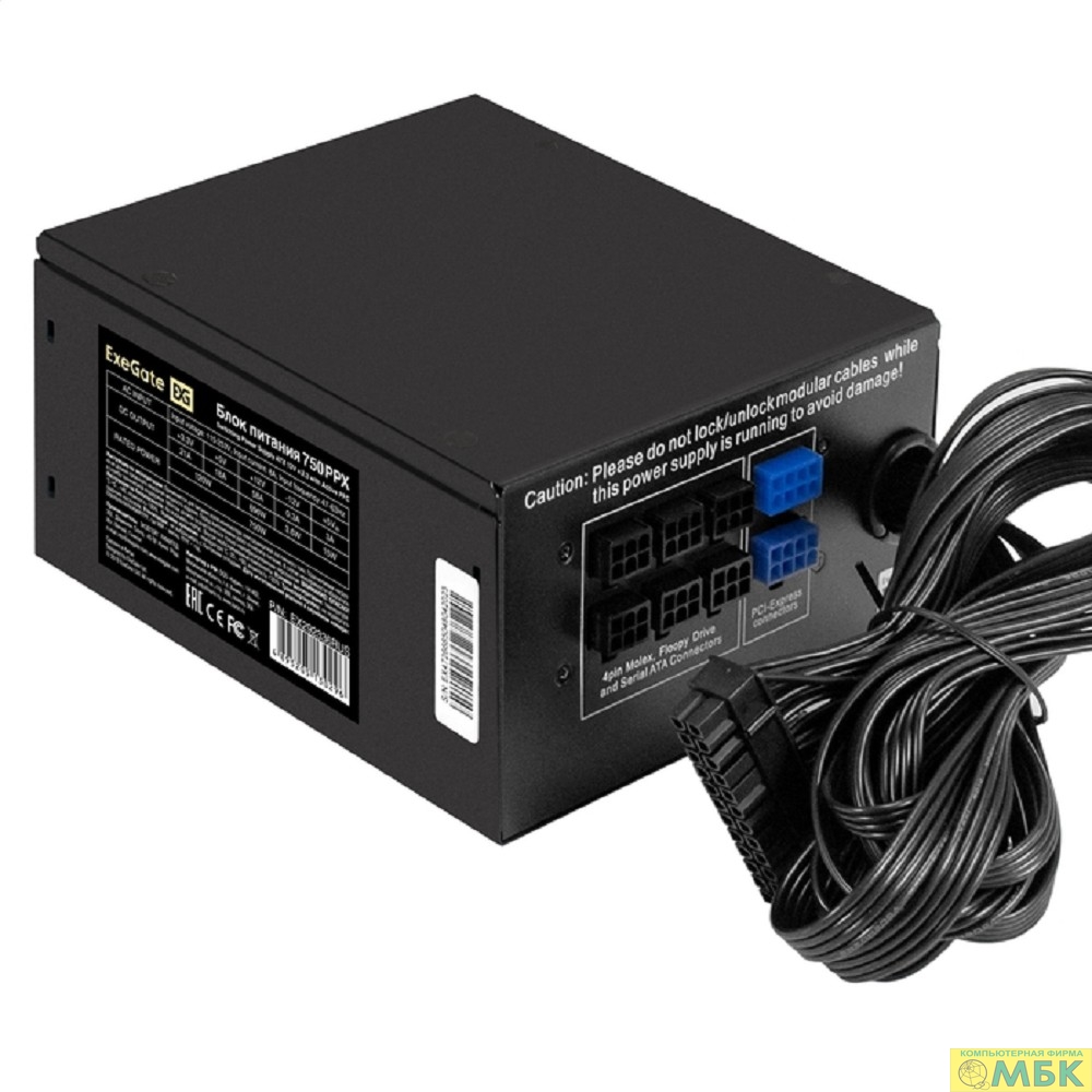 Exegate EX292343RUS Блок питания 750W ExeGate 80 PLUS® Bronze 750PPH (ATX, APFC, КПД 85% (80 PLUS Bronze), 12cm fan, 24pin, 2x(4+4)pin, 4xPCI-E, 6xSATA, 6xIDE, black, Color Box)