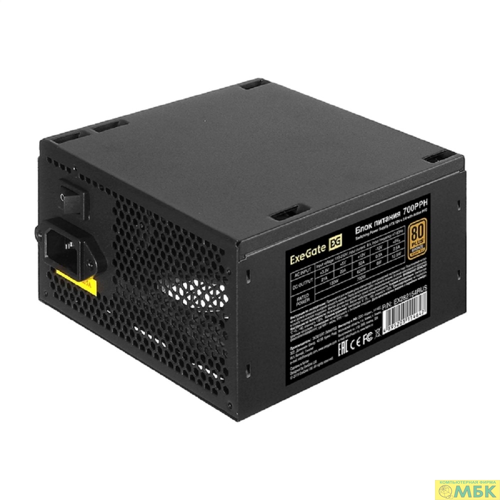Exegate EX282154RUS Блок питания 700W ExeGate 80 PLUS® Bronze 700PPH (ATX, APFC, КПД 89% (80 PLUS Bronze), 12cm fan, 24pin, (4+4)pin, PCIe, 5xSATA, 3xIDE, black, Color Box)