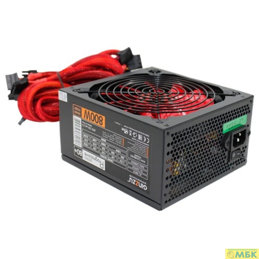 Ginzzu PC800 14CM(Red) 80+ black,APFC,24+4p,4 PCI-E(6+2), 7*SATA, 4*IDE,оплетка, кабель питания,цветная коробка