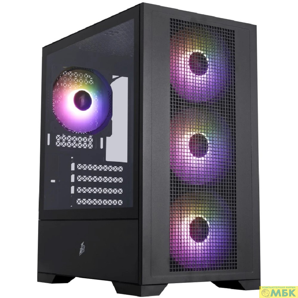 Exegate EX294967RUS Корпус Miditower ExeGate i3 BASE (ATX, без БП, с окном, 1*USB+1*USB3.0, аудио, 4 вент. 12см с RGB подсветкой)