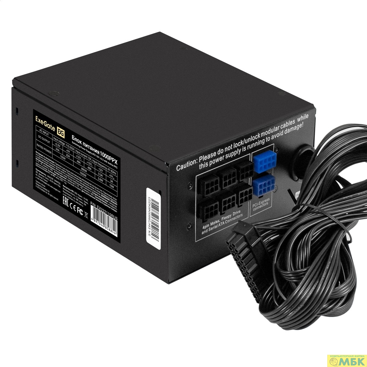 Exegate EX222115RUS Блок питания 1000W Exegate 1000PPX RTL, ATX, black, active PFC, 14cm, 24p+2*(4+4)p,PCI-E,5SATA,,4IDE