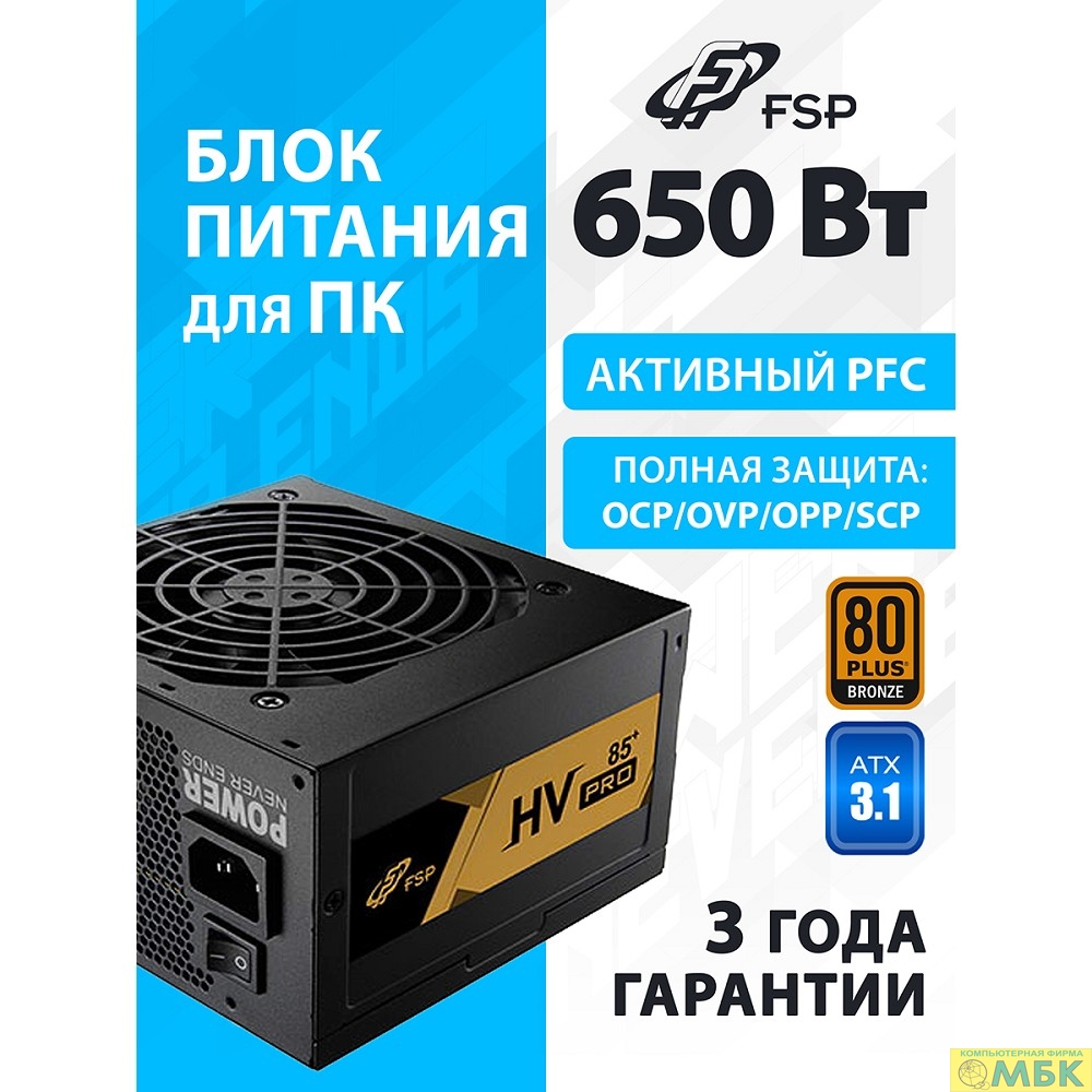 Блок питания FSP FSP650-51AAC HV PRO 85+ ATX 650W, 80+ BRONZE (PPA6505403)