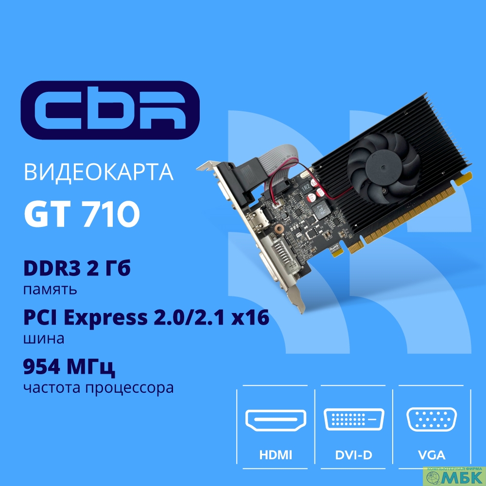 Видеокарта CBR GT710 2Gb DDR3, 64bit, 954Mhz, 1*HDMI + 1*DVI + 1*VGA, 29W, Ret [VGA-STX710-2G-RTL]