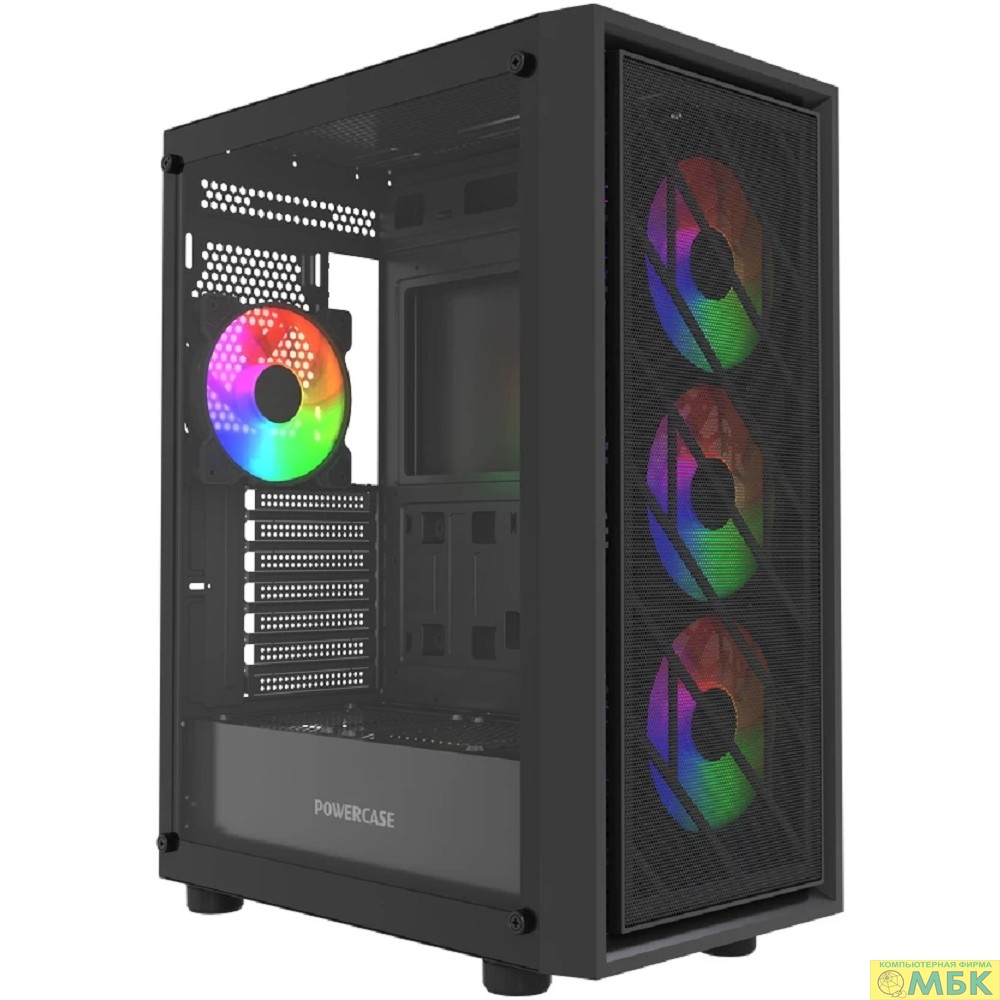 Powercase Корпус Mistral Micro C4B ARGB, Tempered Glass, 4x 120mm ARGB PWM Fan, чёрный, mATX (CMMCB-A4)