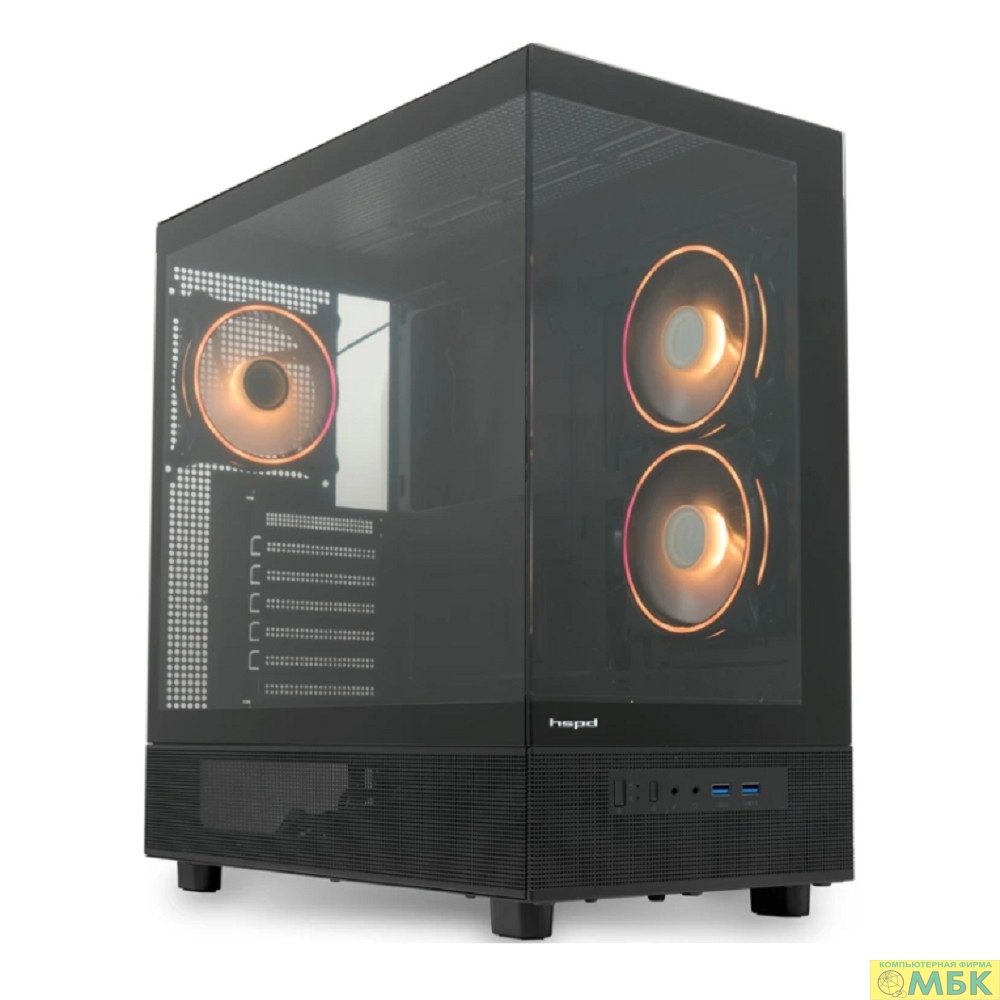 Case HSPD F710, Panoramic Mid Tower, Black, TG, 0.5 SPCC, 3x120mm ARGB (FN027) E-ATX, ATX, mATX, mITX 185/395/270mm 2x2.5", 1x3.5", 7xPCI 2xUSB-A 3.0 435x230x457mm