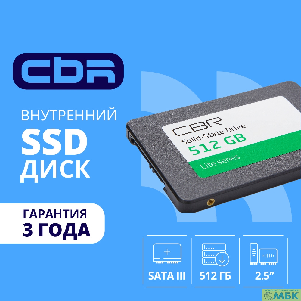 CBR SSD-512GB-2.5-LT22, Внутренний SSD-накопитель, серия "Lite", 512 GB, 2.5", SATA III 6 Gbit/s, SM2259XT, 3D TLC NAND, R/W speed up to 550/520 MB/s, TBW (TB) 256