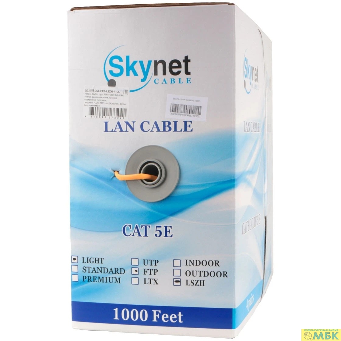 SkyNet Кабель Light FTP нг-LSZH 4x2x0,46, низкое дымовыделение, нулевое содержание галогенов, медный, FLUKE TEST, кат.5e, однож., 305 м, box, оранжевый [CSL-FTP-LSZH-4-CU]