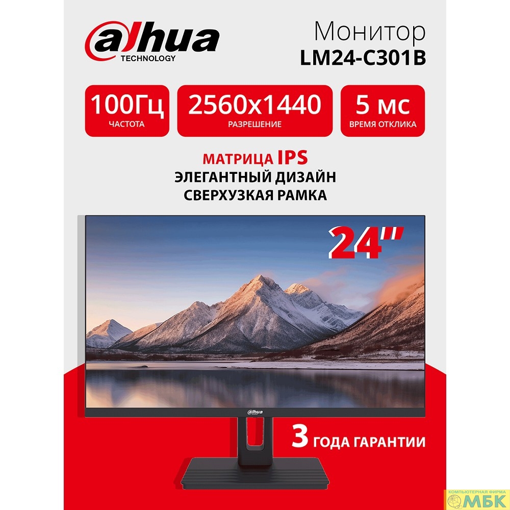 Dahua DHI-LM24-C301B 23.8"(16:9) QHD монитор IPS. ELED подсветка, 2560x1440, 300 кд/м2, 1200:1, 178°/178°, 5 мс, 100Гц, 16.7Млн (8 бит), VESA: 75x75 мм. HDMIx1, DPx1, Аудио выход