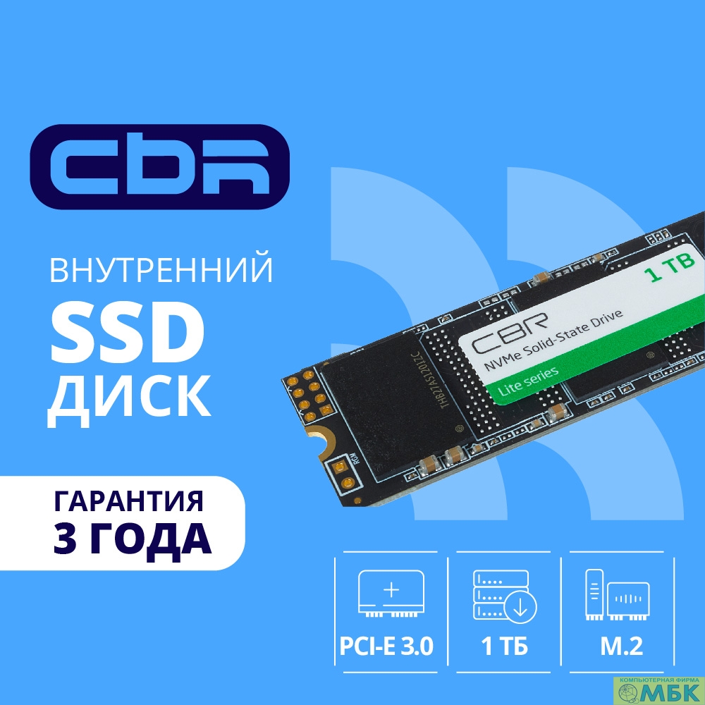 CBR SSD-001TB-M.2-LT22, Внутренний SSD-накопитель, серия "Lite", 1024 GB, 1TB, M.2 2280, PCIe 3.0 x4, NVMe 1.3, SM2263XT, 3D TLC NAND, R/W speed up to 2300/1800 MB/s, TBW (TB) 500