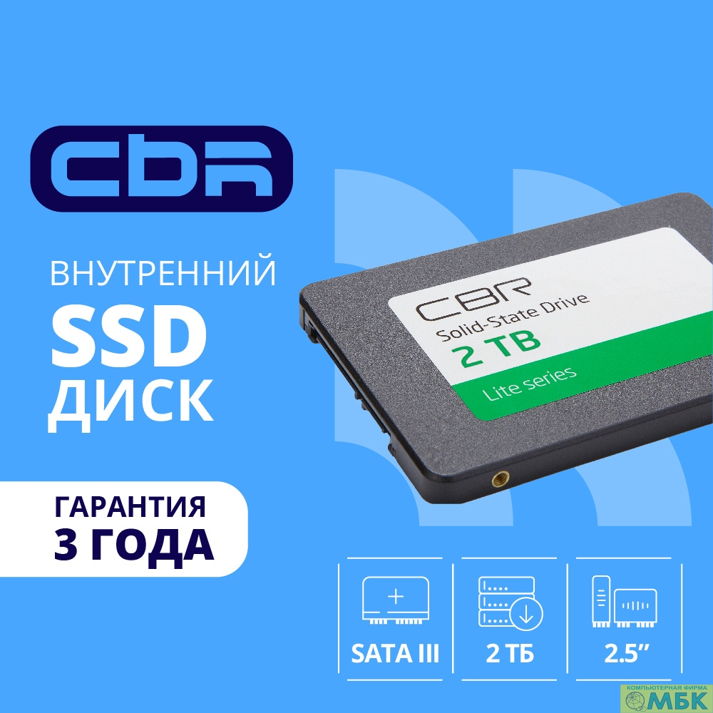 CBR SSD-002TB-2.5-LT22, Внутренний SSD-накопитель, серия "Lite", 2TB, 2048 GB, 2.5", SATA III 6 Gbit/s, SM2259XT, 3D TLC NAND, R/W speed up to 550/520 MB/s, TBW (TB) 1000