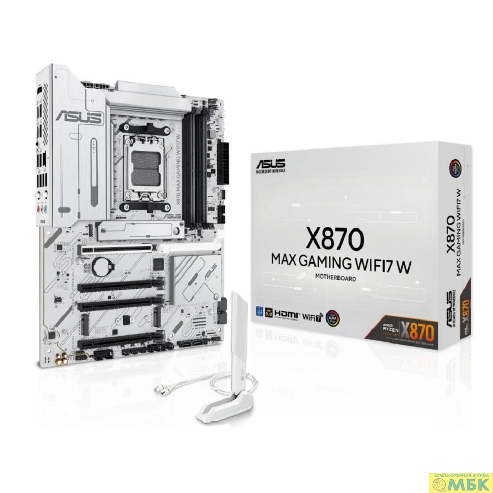 ASUS X870 MAX GAMING WIFI7 W(SocketAM5, ATX, 4xDDR5(256GB), HDMI, 1xPCIe5.0x16/2xPCIe4.0x16/1xPCIe3.0x16, 1xLAN (2.5GbE), Wi-Fi 7, BT, 4xSATA 6Gb/s, 3xM.2, 2xUSB4 Type-C, 4xUSB 3.2, 4xUSB 2.0) white
