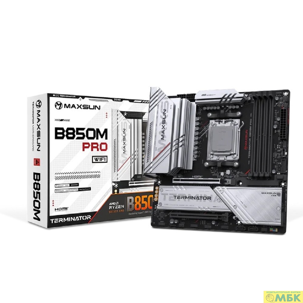 MAXSUN MS-Terminator B850M PRO WIFI (Socket AM5, mATX, 4*DDR5(192Gb), DP/HDMI, 2*SATA3, 3*M.2, 1*PCIEx16/1*PCIEx4, 1* Type-C, 4*USB 2.0, 4*USB 3.2, LAN 1*2.5G, SPDIF, WiFi 6E, RTL)