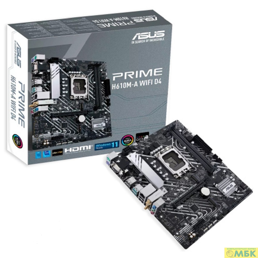 ASUS PRIME H610M-A WIFI D4 (Socket 1700, mATX, 2xDDR4(64GB), VGA/HDMI/DP, 1xPCIe 4.0x16/1xPCIe 3.0, 1xLAN, Wi-Fi, BT, 4xSATA 6Gb/s, 2xM.2, 2xUSB 3.2, 4xUSB 2.0, 2xPS/2)