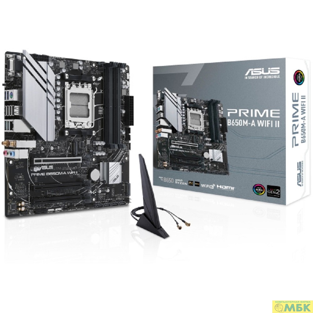 ASUS PRIME B650M-A WIFI II RTL (Socket AM5, mATX, 4xDDR5(128GB), VGA/DP/HDMI, 3xPCIe 4.0x16, 2,5xLAN, 4xSATA 6Gb/s, 2xM.2, WiFi 6E, 1xType-С, 2xUSB 3.1, 2xUSB 3.2, 4xUSB 2.0, 1xPS/2)