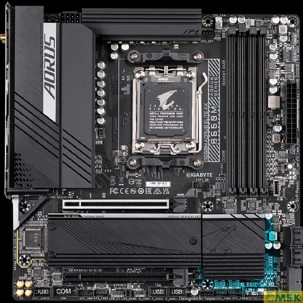 Gigabyte B650M AORUS ELITE AX {Socket AM5, AMD B650, 4xDDR5-5200, HDMI+DP, 2xPCI-Ex16, 4xSATA3(RAID 0/1/10), 2xM.2, 8 Ch Audio, 2.5GLan, WiFi, (4+4)xUSB2.0, (7+2)xUSB3.2, (1+1)xUSB3.2 Type-C™, mATX}