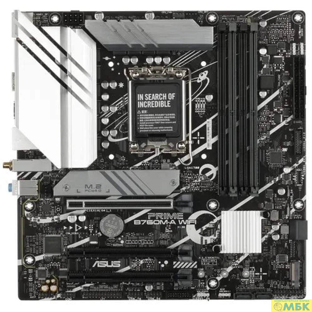 ASUS PRIME B760M-A WIFI (Socket 1700, mATX, 4xDDR5(128GB), 2xHDMI 2.1/DP, 3xPCIe 4.0x16, 1xLAN (2.5GbE), Wi-Fi, BT, 4xSATA 6Gb/s, 2xM.2, 2xUSB 3.2, 4xUSB 2.0, 1xPS/2)(90MB1EL0-M1EAY0)