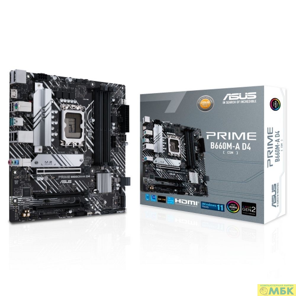 ASUS PRIME B660M-A D4-CSM (Socket 1700, mATX, 4xDDR4(128GB), DP/2xHDMI 2.1, 1xPCIe 4.0x16/2xPCIe 3.0x16, 1xLAN, 4xSATA 6Gb/s, 2xM.2, 2xUSB 3.2, 4xUSB 2.0, 1xPS/2)