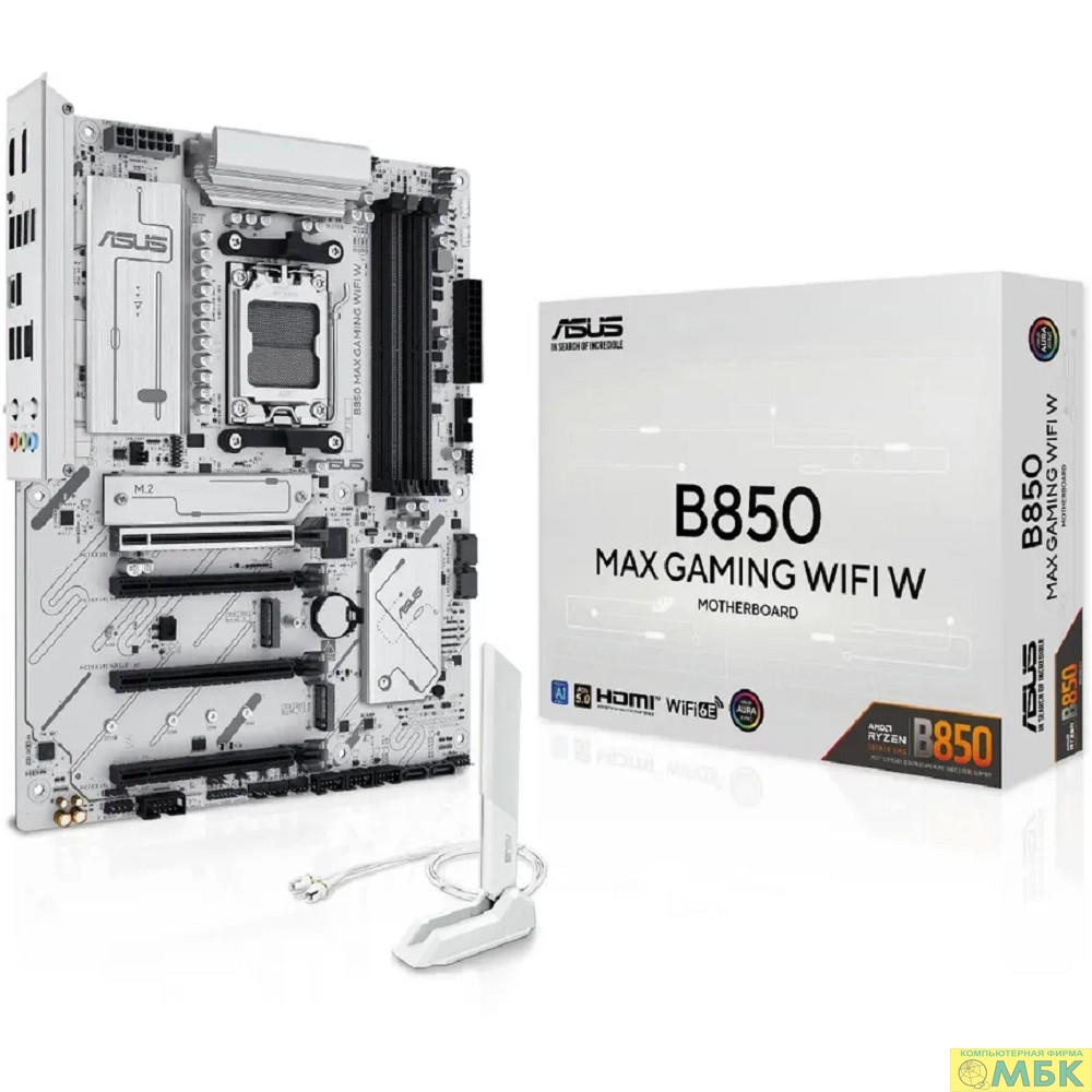 ASUS B850 MAX GAMING WIFI W (Socket AM5, ATX, 4xDDR5(256GB), DP/HDMI 2.1, 1xPCIe 5.0x16/1xPCIe 4.0x16/2xPCIe 3.0x16, 1xLAN (2.5GbE), Wi-Fi, BT, 4xSATA 6Gb/s, 3xM.2, 1*Type-C, 5xUSB 3.2, 2xUSB 2.0)