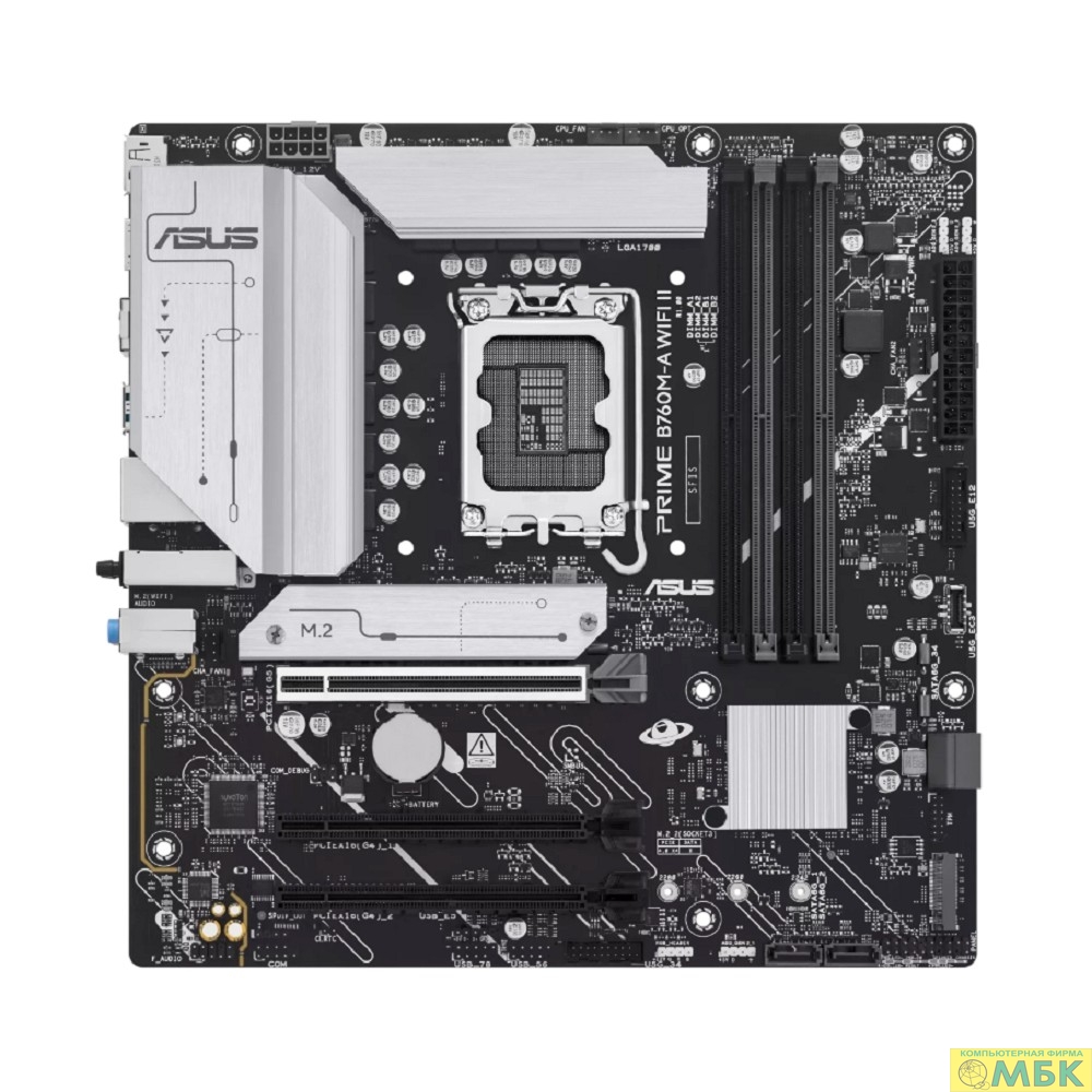 ASUS PRIME B760M-A WIFI II (Socket1700, mATX, 4xDDR5(256GB), DP/HDMI, 1xPCIe 5.0x16/2xPCIe 4.0x16, 1xLAN (2.5GbE), Wi-Fi, BT, 4xSATA 6Gb/s, 2xM.2, 2xUSB 3.2, 4xUSB 2.0)
