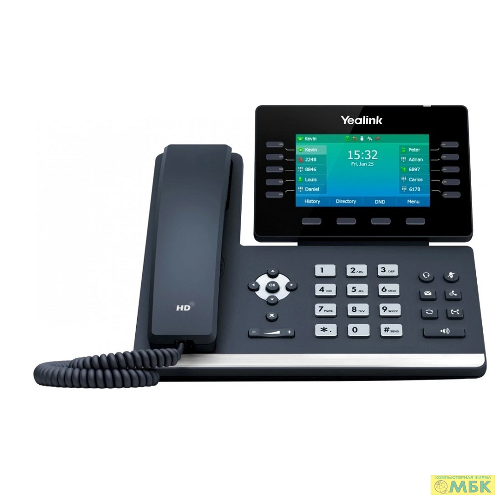 YEALINK SIP-T54W SIP-телефон, цветной экран 4.3", 16 SIP аккаунтов, Wi-Fi, Bluetooth, Opus, 10*BLF, PoE, USB, GigE, БЕЗ БП