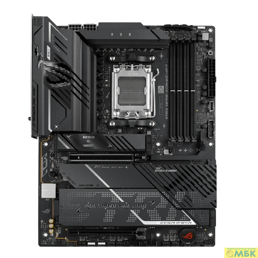 ASUS ROG STRIX X870E-H GAMING WIFI7 (Socket AM5, ATX, 4xDDR5(256GB), HDMI, 1xPCIe 5.0x16/1xPCIe 4.0x16, 1xLAN (5GbE), 4xSATA 6Gb/s, 4xM.2, Wi-Fi 7, 2xType-C, 4xUSB3.1, 6xUSB3.0, 2xUSB 2.0)