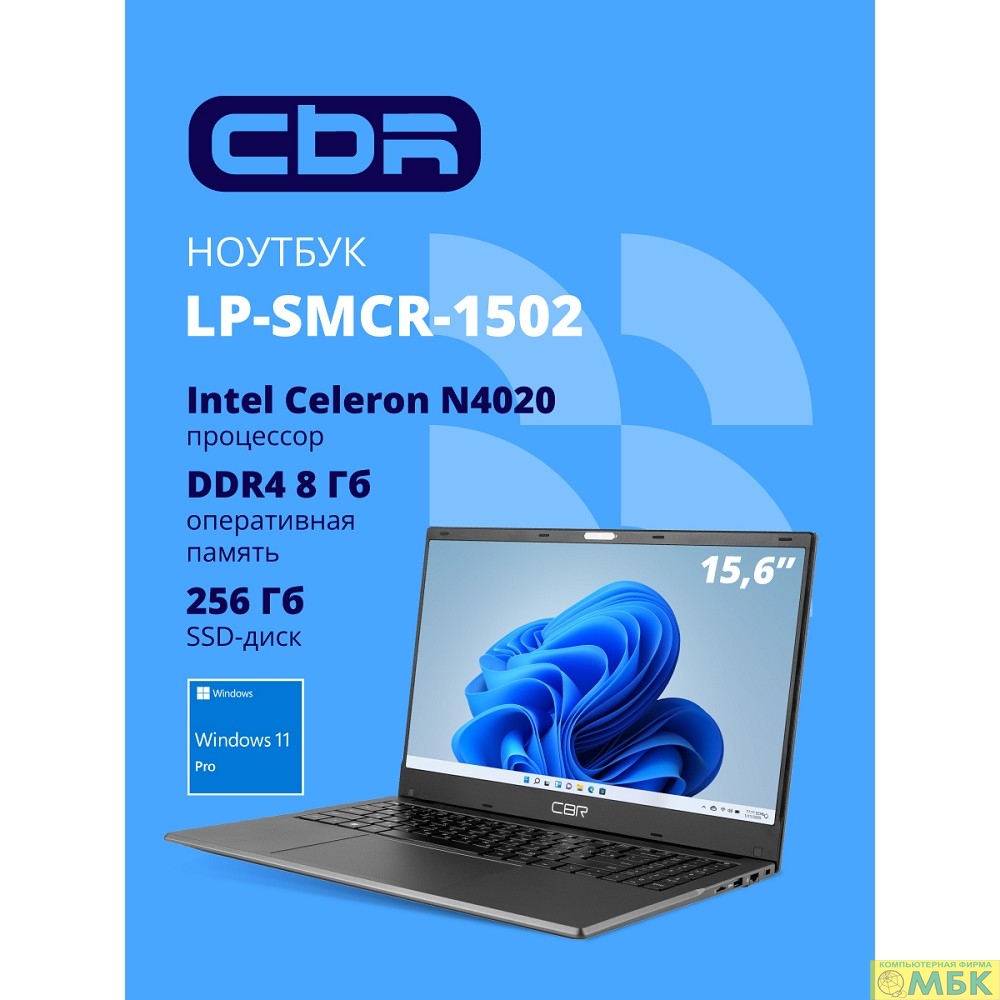 CBR LP-SMCR-1502 15.6" FHD IPS (Intel Celeron N4020(1.1GHz) /8Gb DDR4 / 256Gb M.2 SSD / Intel UHD Graphics / RJ45 / Windows 11 Pro /4800mAh /пластик)