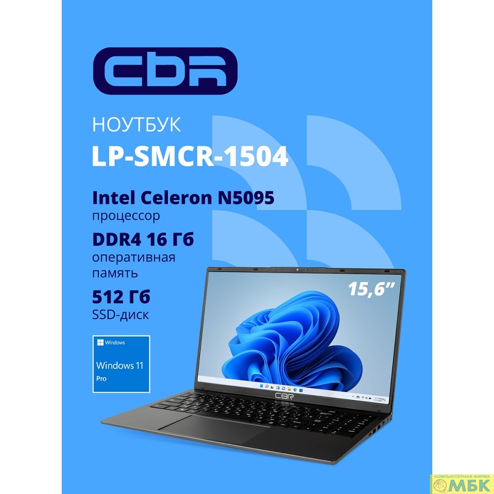 CBR LP-SMCR-1504 15.6" FHD IPS (Intel Celeron N5095(2GHz) /16Gb DDR4 / 512Gb M.2 SSD / Intel UHD Graphics / RJ45 / Windows 11 Pro /4800mAh /пластик)