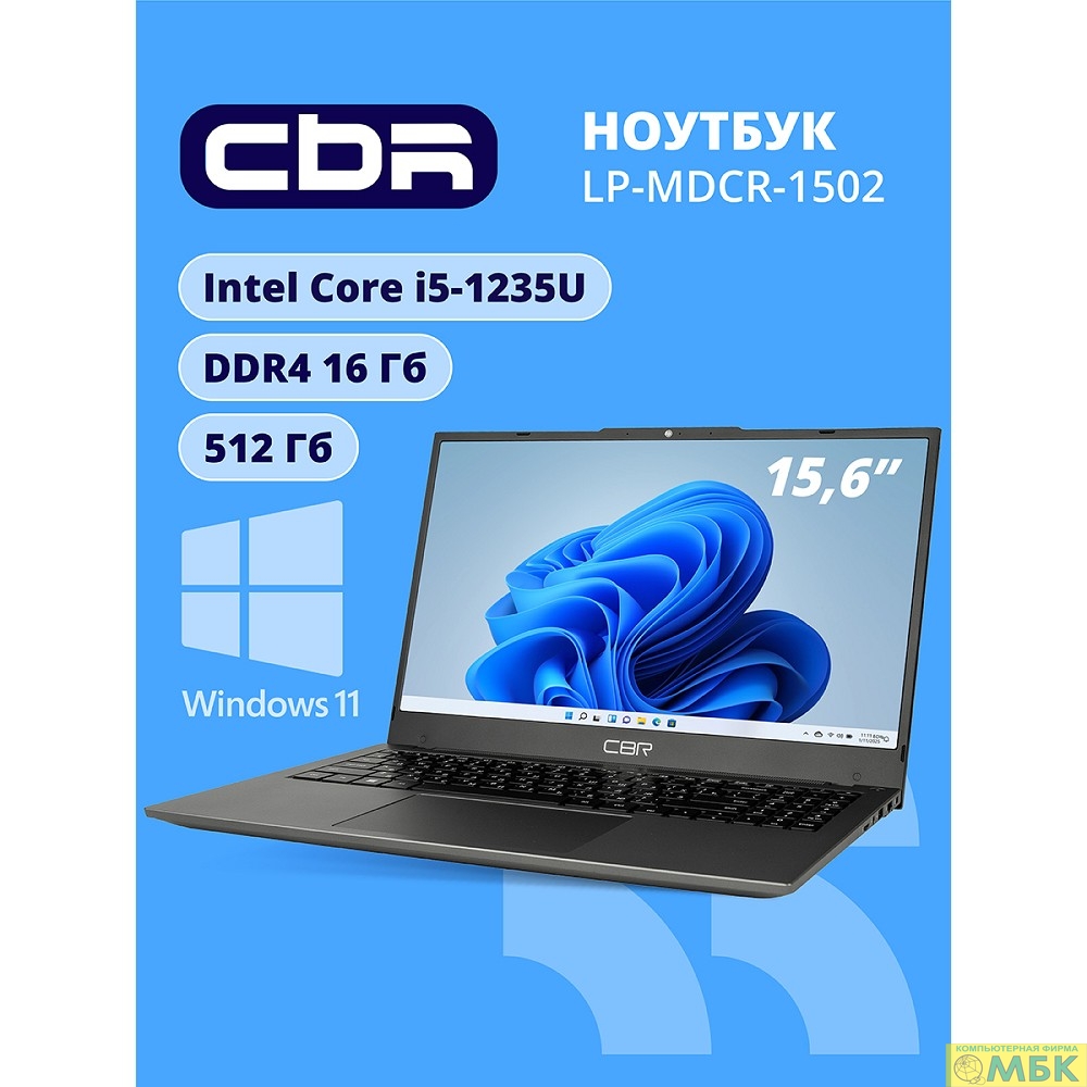 CBR LP-MDCR-1502 15.6" FHD IPS (Intel i5-1235U(1.3GHz) / 16Gb DDR4 3200MHz (2slot) / 512Gb SSD PCIe /Intel UHD Graphics (support Iris Xe with dual RAM) / RJ45 / W11Pro/4250 mAh /металл+ пластик)