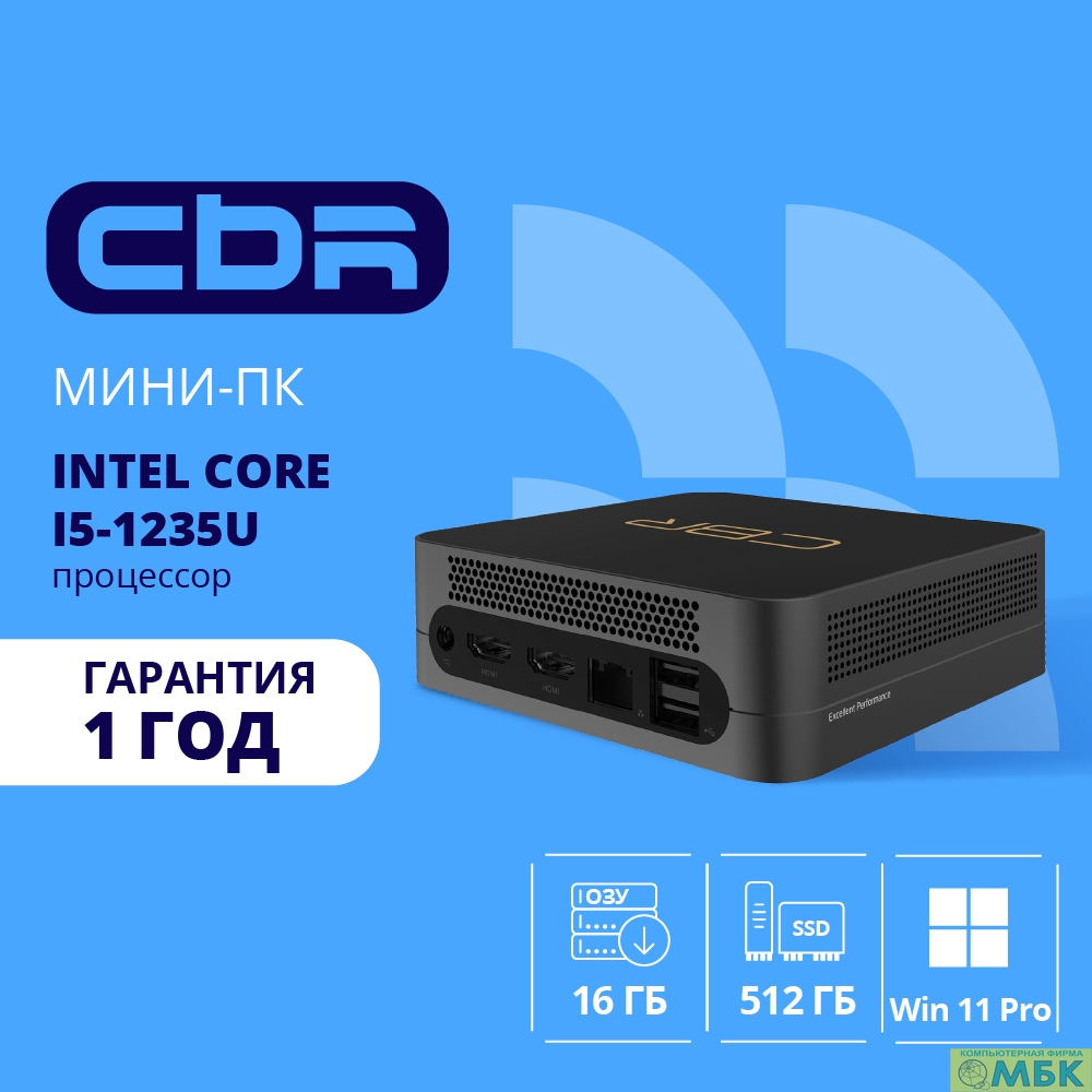 CBR MiniPC-DT002 (Intel i5-1235U /16Gb DDR4/512Gb SSD PCIe / W11Pro / 2 х USB 2.0, 2 х HDMI, 2 х USB 3.2, USB-C 3.0, USB-C 2.0, 3.5mm Combo Jack, RJ-45, VESA 75*75/100*100 )