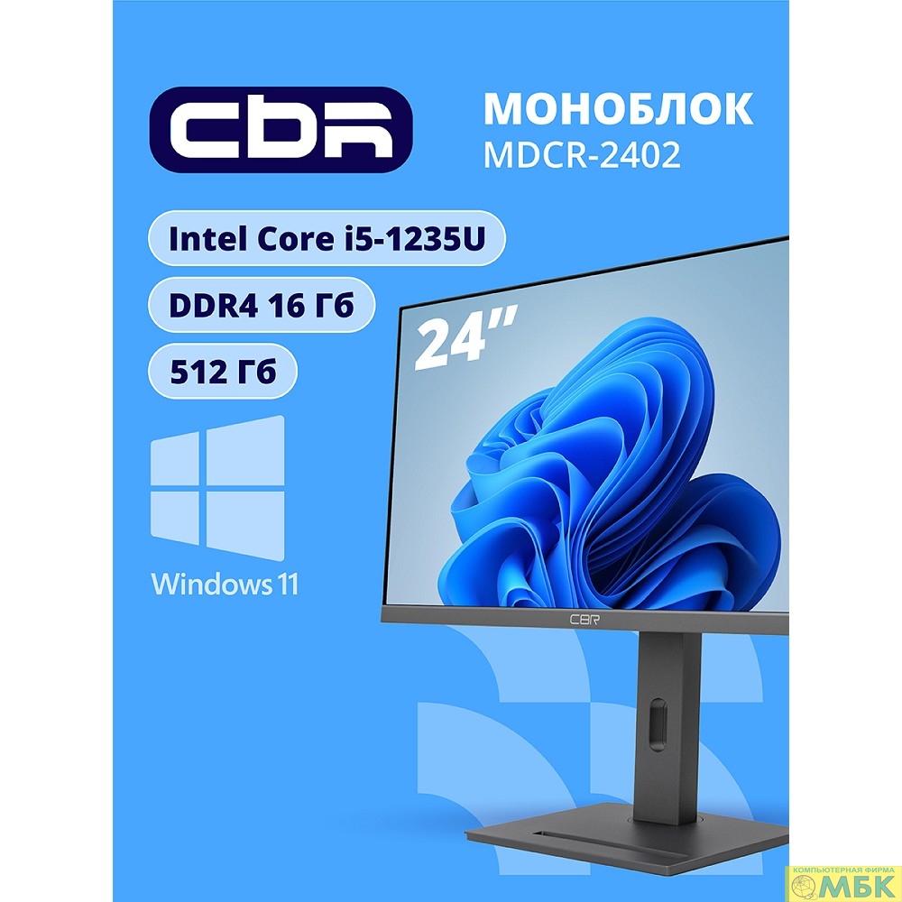 CBR AiO-MDCR-2402 23.8" FHD IPS (i5-1235U(1.3GHz) / 16Gb DDR4 3200MHz (2slot) / 512Gb SSD PCIe /Intel UHD Graphics (support Iris Xe with dual RAM) / RJ45 / Windows 11 Pro