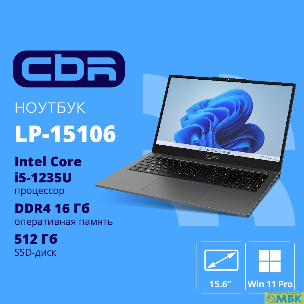 Ноутбук CBR LP-15106 15.6" (FHD IPS / i5-1235U(1.3GHz) /16Gb DDR4 3200MHz / 512Gb SSD PCIe / Intel UHD Graphics (support Iris Xe with dual RAM) / RJ45 / Windows 11 Pro /4825 mAh /1840g/металл+пластик)