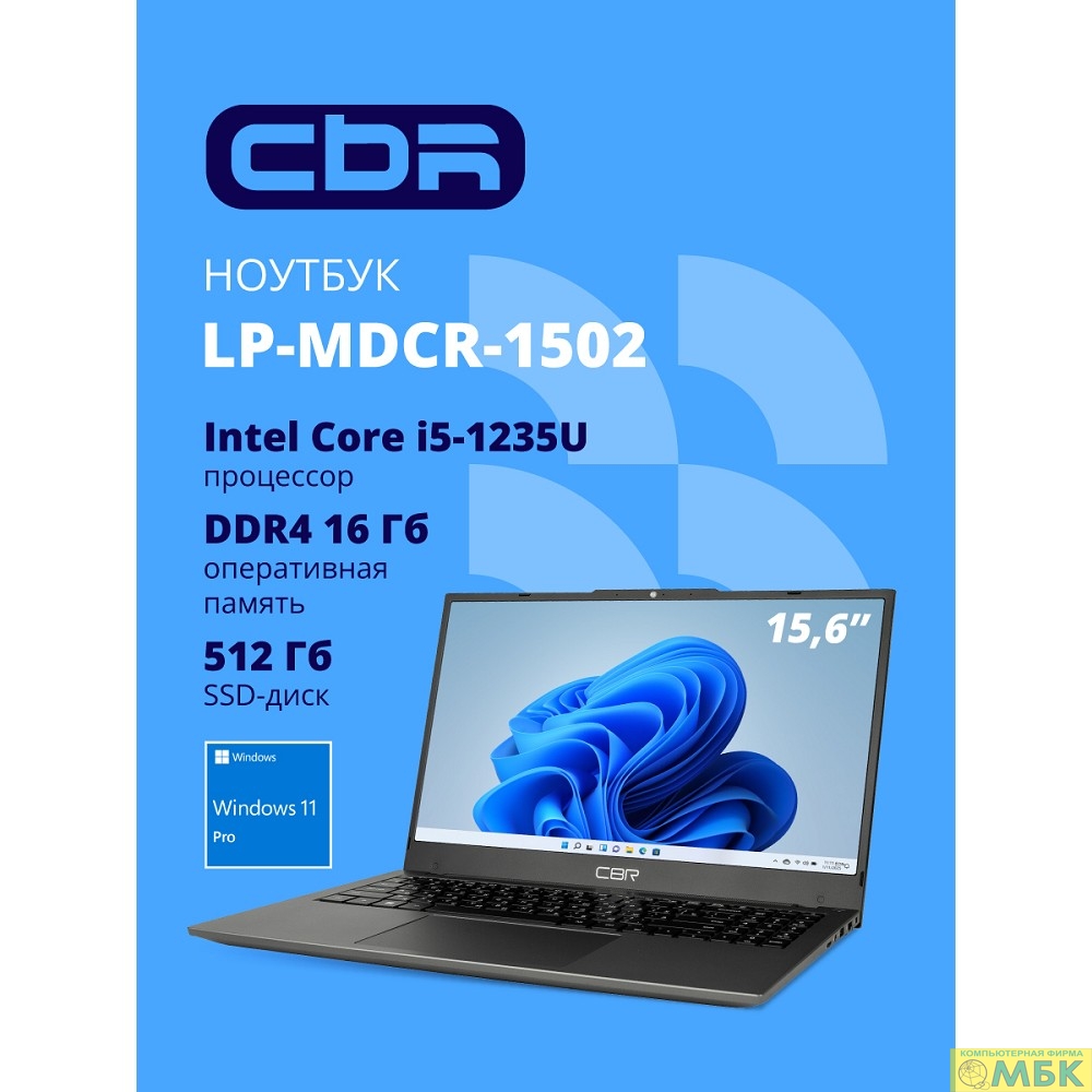 CBR LP-MDCR-1502 15.6" FHD IPS (Intel i5-1235U(1.3GHz) / 16Gb DDR4 3200MHz (2slot) / 512Gb SSD PCIe /Intel UHD Graphics (support Iris Xe with dual RAM) / RJ45 / W11Pro/4250 mAh /металл+ пластик)