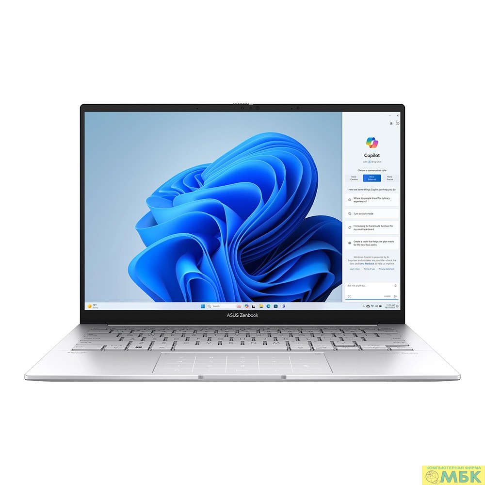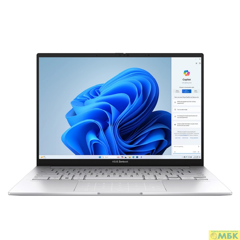 ASUS Zenbook 14 UX3405CA-PP642 [90NB14W2-M00Y50] Silver 14" {OLED 2880x1800 Ultra 9 285H / 32Gb / SSD 512Gb/Arc graphics/DOS+ алюм корп; +чехол; NumberPad}