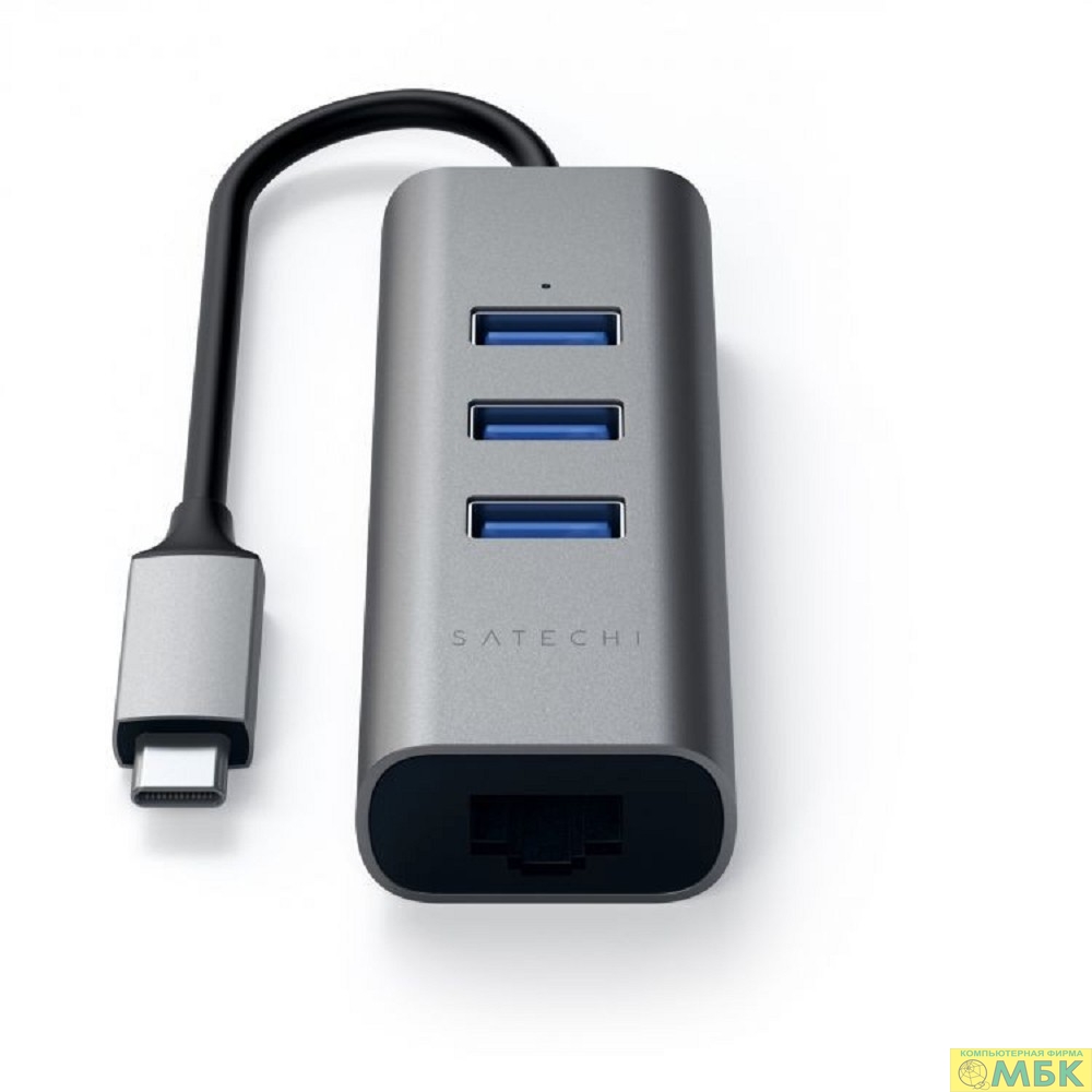 USB-хаб Satechi Type-C 2-in-1 USB 3.0 Aluminum 3 Port Hub and Ethernet Port. Интерфейс Type-C. Цвет серый космос.[ST-TC2N1USB31AM]