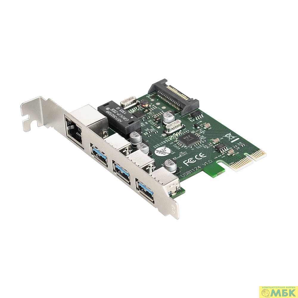 Exegate EX283714RUS Контроллер сетевой EXE-361 PCI-E 2.0, 3*USB3.0 ext + LAN UTP 1000Mbps, раз.доп.пит.OEM)