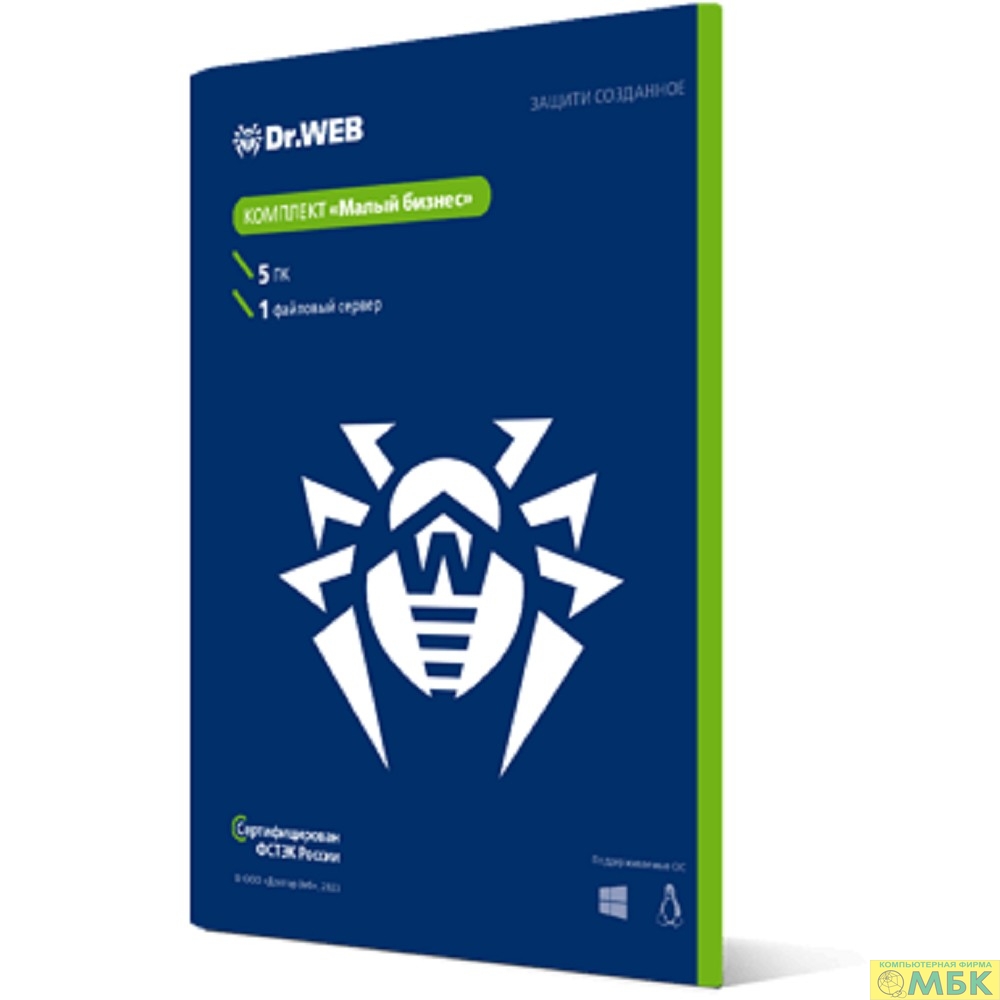 BBZ-*C-12M-5-A3 Dr.Web «Малый бизнес» сертифицированный ФСТЭК России, в картонной упаковке, на 12 мес., на 5 пк. + 1 файловый сервер + 5 мобильных устройств