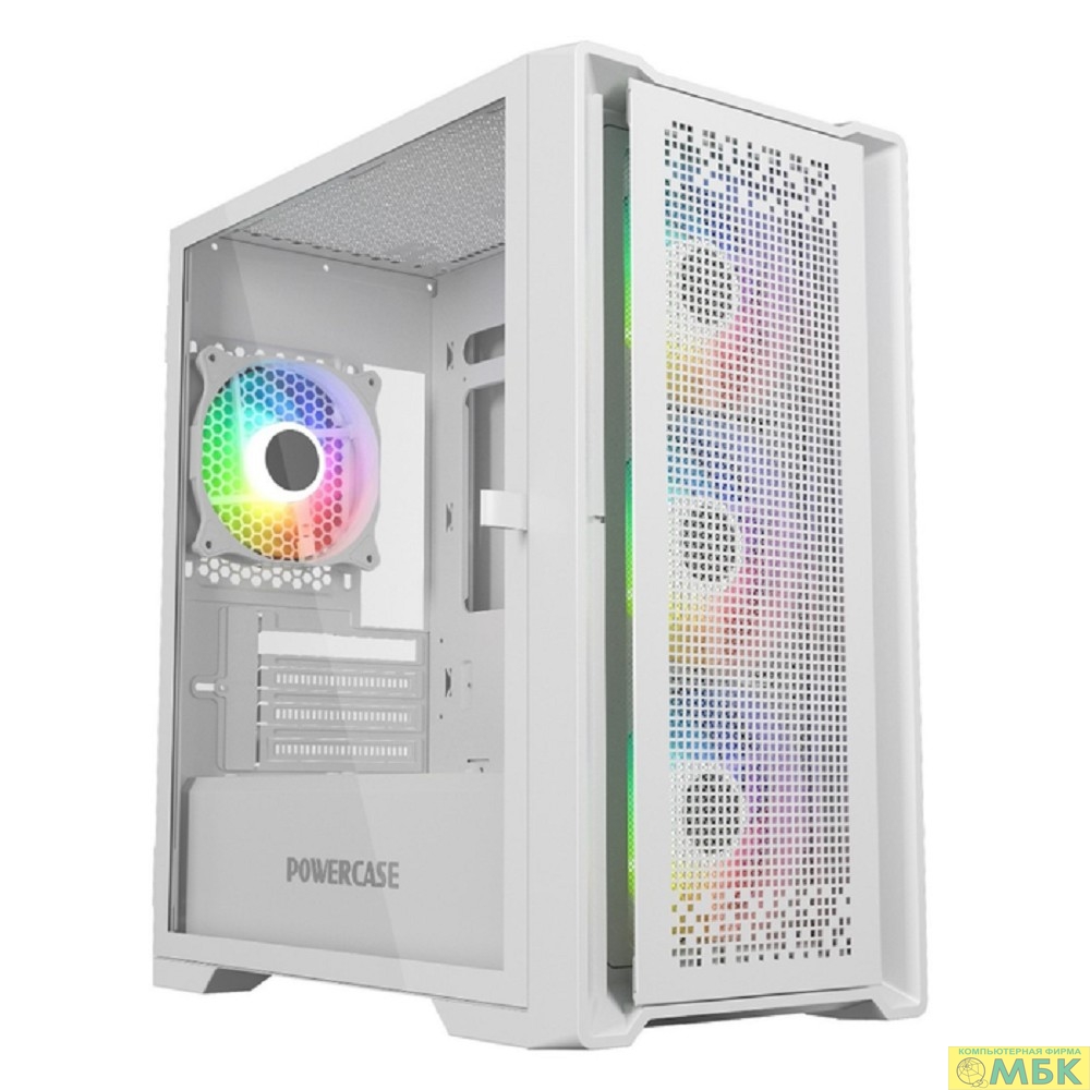 Powercase ByteFlow Micro White, Tempered Glass, 4х 120mm ARGB fans, ARGB HUB, белый, mATX (CAMBFW-A4)