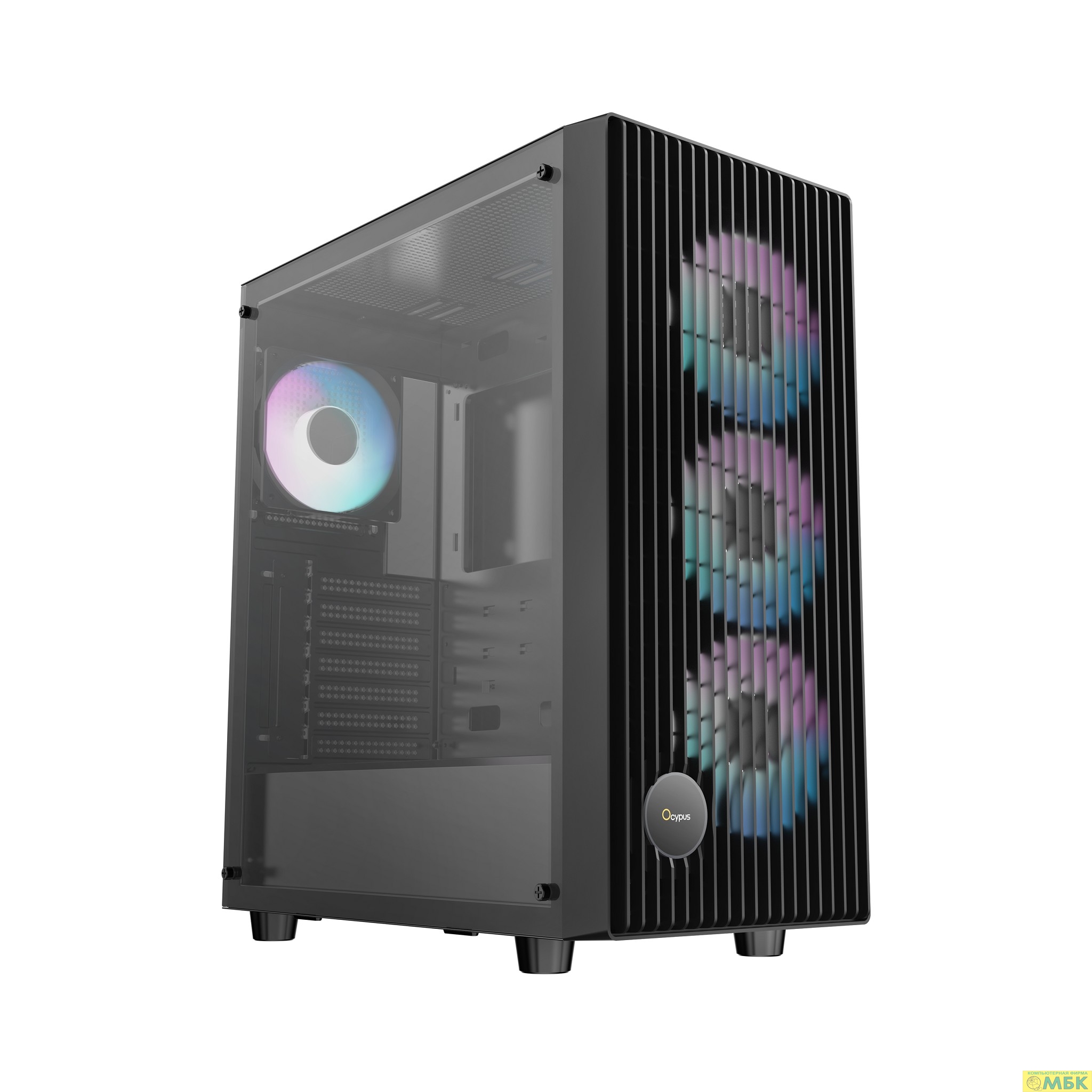 Powercase ByteFlow Micro Black, Tempered Glass, 4х 120mm ARGB fans, ARGB HUB, чёрный, mATX (CAMBFB-A4)