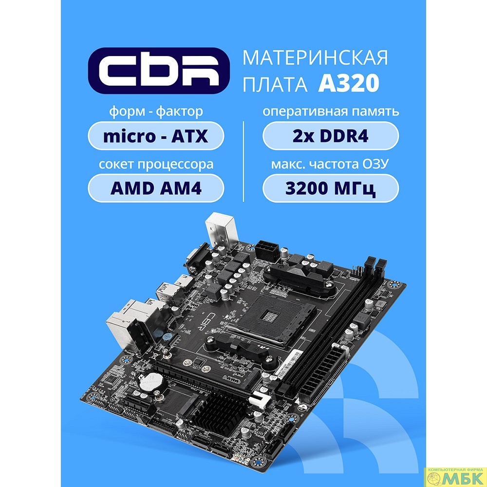 CBR A320 OEM { Chipset A320, Socket AM4, 2*DDR4, mATX, VGA+HDMI, 1*PCIEx16,1*PCIEx1, 1*M.2(NVME), 4*SATA3, 2*USB2.0 + 4*USB3.0, LAN 1Gb} OEM УПАКОВКА