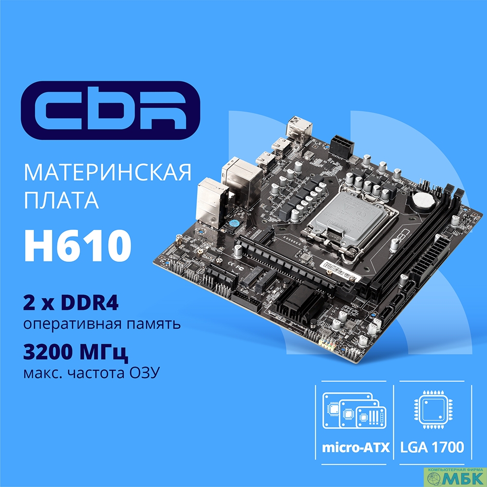 CBR H610 OEM { Chipset H610, Socket 1700, 2*DDR4, mATX, DP+2*HDMI, 1*PCIEx16,1*PCIEx1,2*M.2(NVME,SATA), 3*SATA3, 4*USB 2.0 + 2*USB3.0, LAN 1Gb} OEM УПАКОВКА