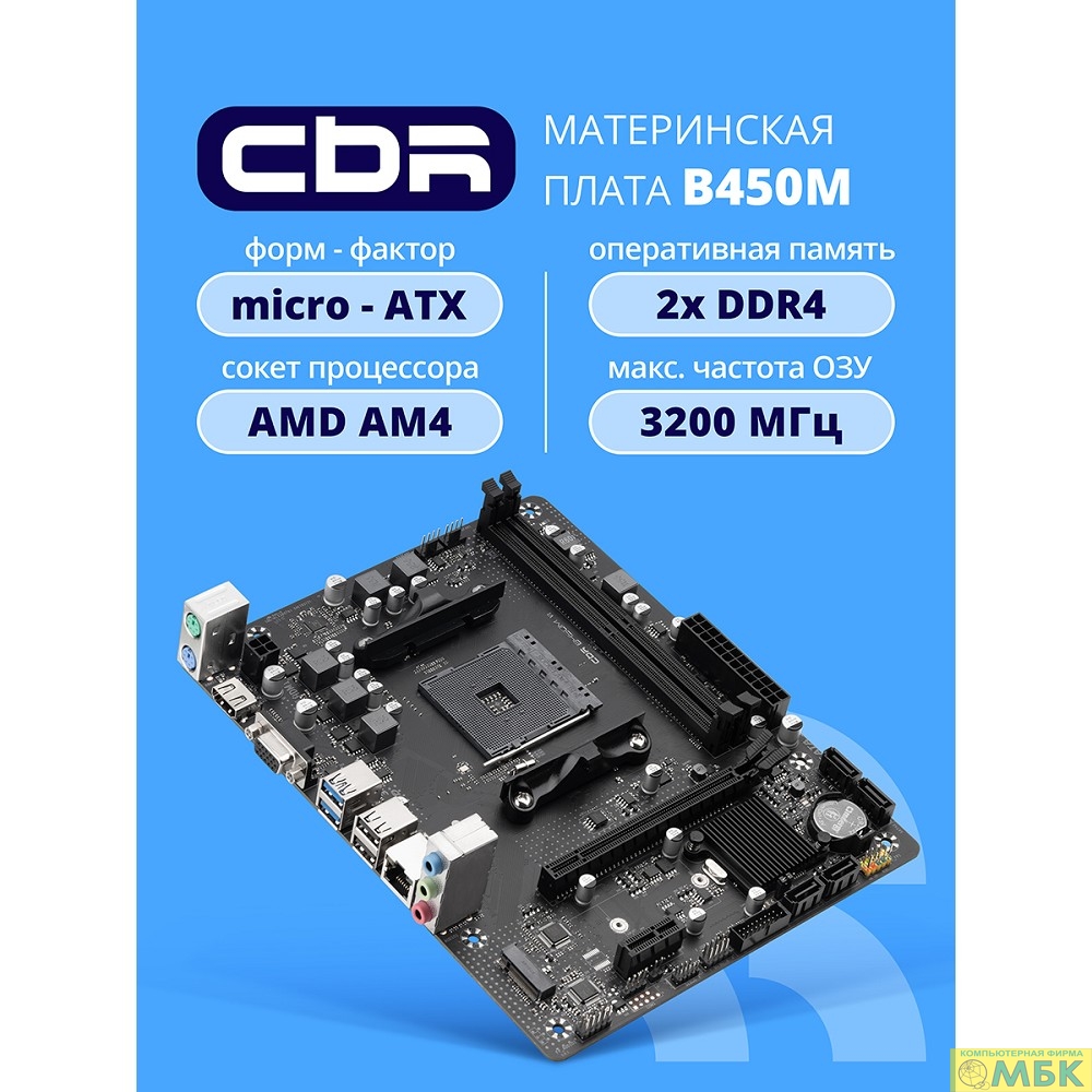 Материнская плата CBR B450M V1 {Socket AM4, 2*DDR4, mATX, VGA+HDMI, 1*PCIEx16/1*PCIEx1/1*M.2(NVME & SATA), 4*SATA3, 4*USB2+4*USB3, Glan}