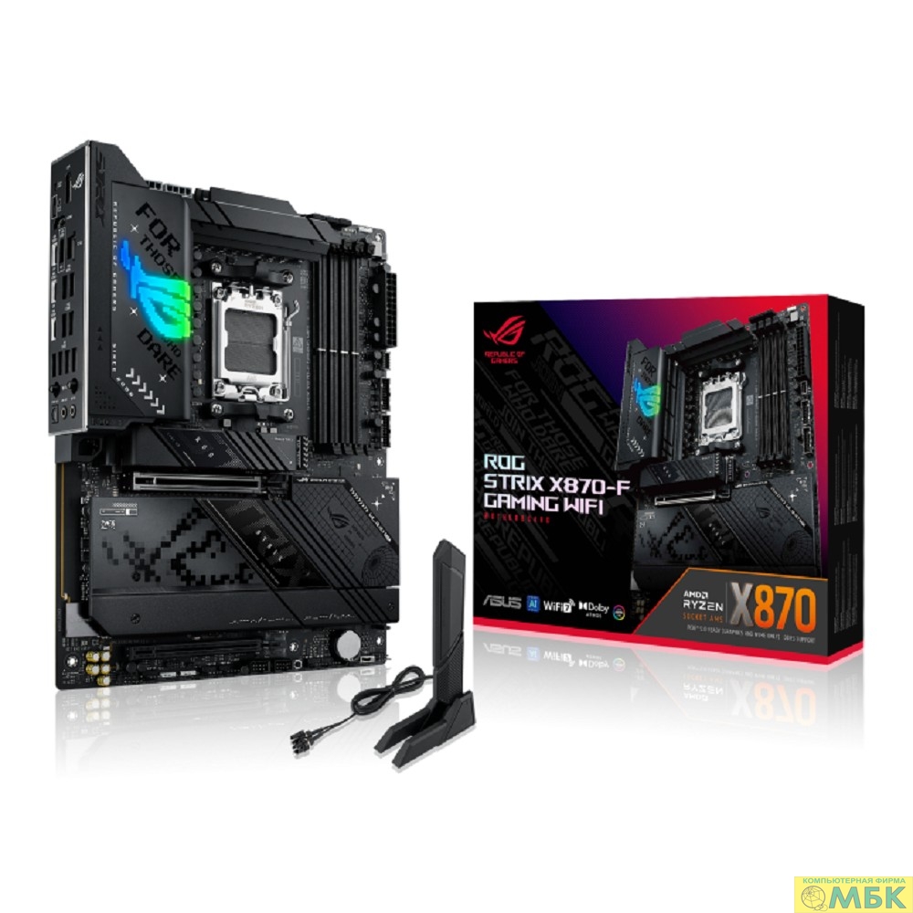 ASUS ROG STRIX X870-F GAMING WIFI (Socket AM5, ATX, 4xDDR5(192GB), DP/HDMI, 1xPCIe 5.0x16/1xPCIe 4.0x16, 1xLAN (2.5GbE), Wi-Fi 7, BT 5.4, 2xSATA 6Gb/s, 4xM.2, 2xUSB4 Type-C, 1xUSB-C, 9xUSB 3.2)