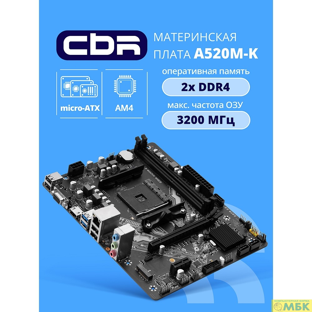 CBR A520 OEM { Chipset A520, Socket AM4, 2*DDR4, mATX, VGA+HDMI, 1*PCIEx16,1*PCIEx1,1*M.2(NVME & SATA), 4*SATA3, 2*USB2.0 + 4*USB3.0, LAN 1Gb} OEM УПАКОВКА