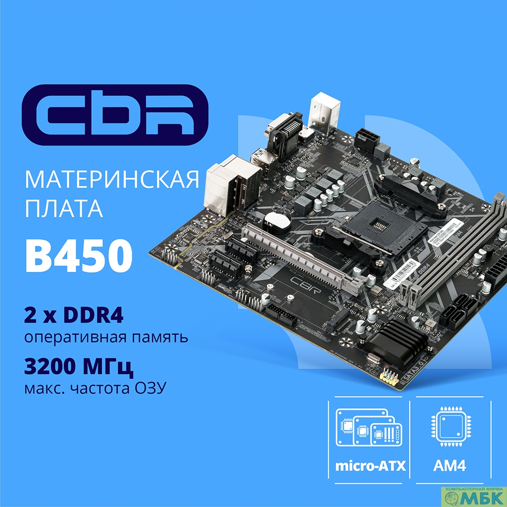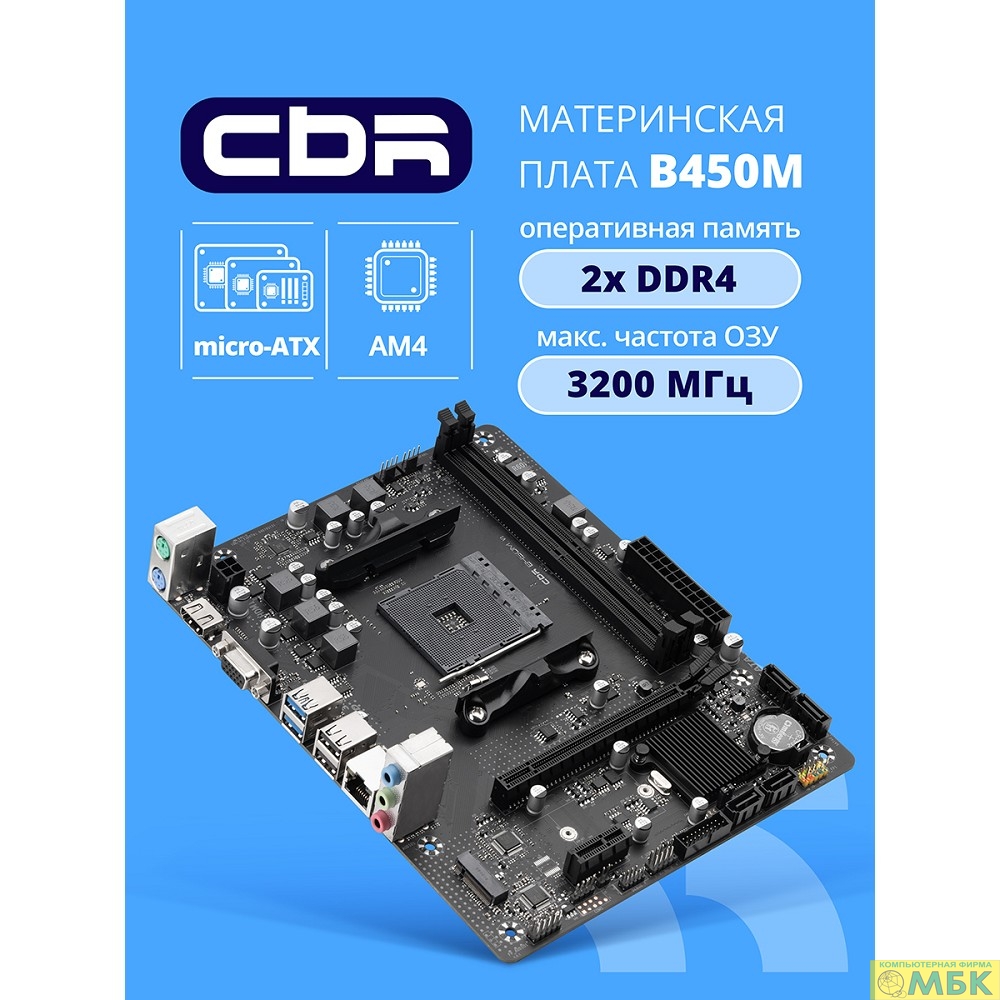 CBR B450 OEM { Chipset B450, Socket AM4, 2*DDR4, mATX, VGA+HDMI, 1*PCIEx16,1*PCIEx1,1*M.2(NVME & SATA), 4*SATA3, 2*USB2.0 + 2*USB3.0, LAN 1Gb} OEM УПАКОВКА